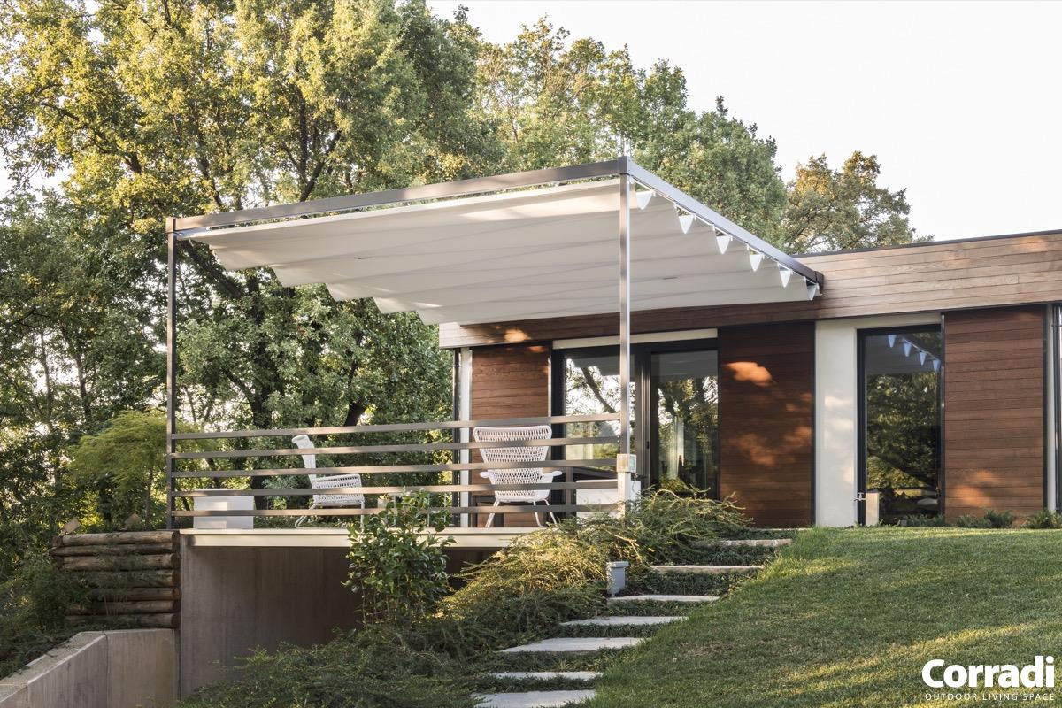 Pergotenda Exyl is the metal pergola that best describes this capacity for synthesis, a perfect fusion of minimalism and practicality.