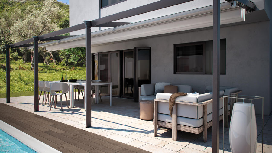 The Corradi Pergotenda® Palladia is a wall-mounted aluminium pergola with clean, modern lines — a timeless blend of style and innovation. Its gently sloping, fully retractable roof allows you to open the space on warm, sunny days or close it for complete watertight protection when the weather turns. An integrated drainage system channels rainwater discreetly through the legs, keeping your space dry and comfortable. Fully customisable in size, shape, and finish, the Palladia can include side closures such as motorised screens or sliding glass doors, plus integrated lighting and heating. The result is a smart, all-season structure that extends service, maximises comfort, and increases revenue year-round.