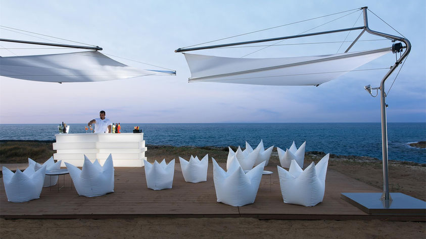 Sculptural, all-weather shade — Italian design that transforms outdoor spaces.